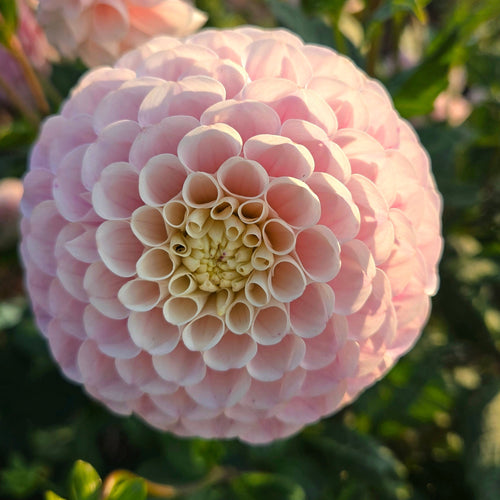 Soft and romantic, this ball dahlia produces 2–3 inch blooms in a delicate blend of blush pink and creamy white with gentle petal variation. Its full, slightly loose form creates a timeless, elegant look—perfect for both garden beauty and refined arrangements.